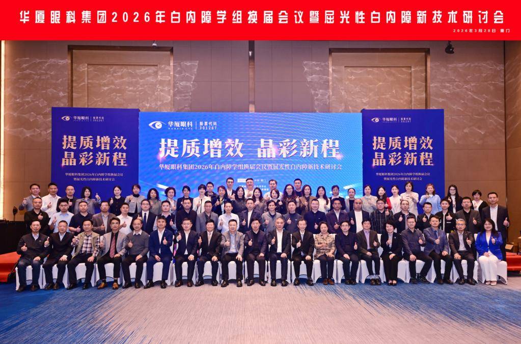 聚焦前沿视野,共绘睛彩未来。3月28日-29日,以“提质增效 · 晶彩新程”为主题的华厦眼科医院集团2026年白内障学组换届会暨屈光性白内障新技术研讨会在厦门隆重召开。时值全国两会热议“高品质生活”之际,集团白内障学科专家、青年骨干及运营管理者齐聚一堂,围绕学科发展与团队建设、学术科研等话题,及老视矫正晶体手术、飞秒激光辅助白内障手术、屈光晶体手术等前沿技术展开探讨,以务实之举回应时代命题,以创新之姿擘画光明未来。